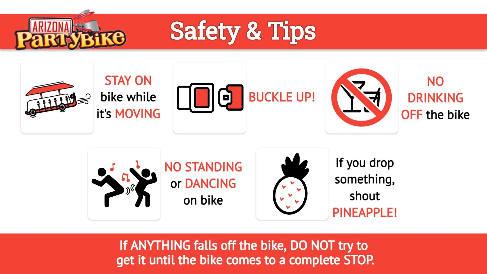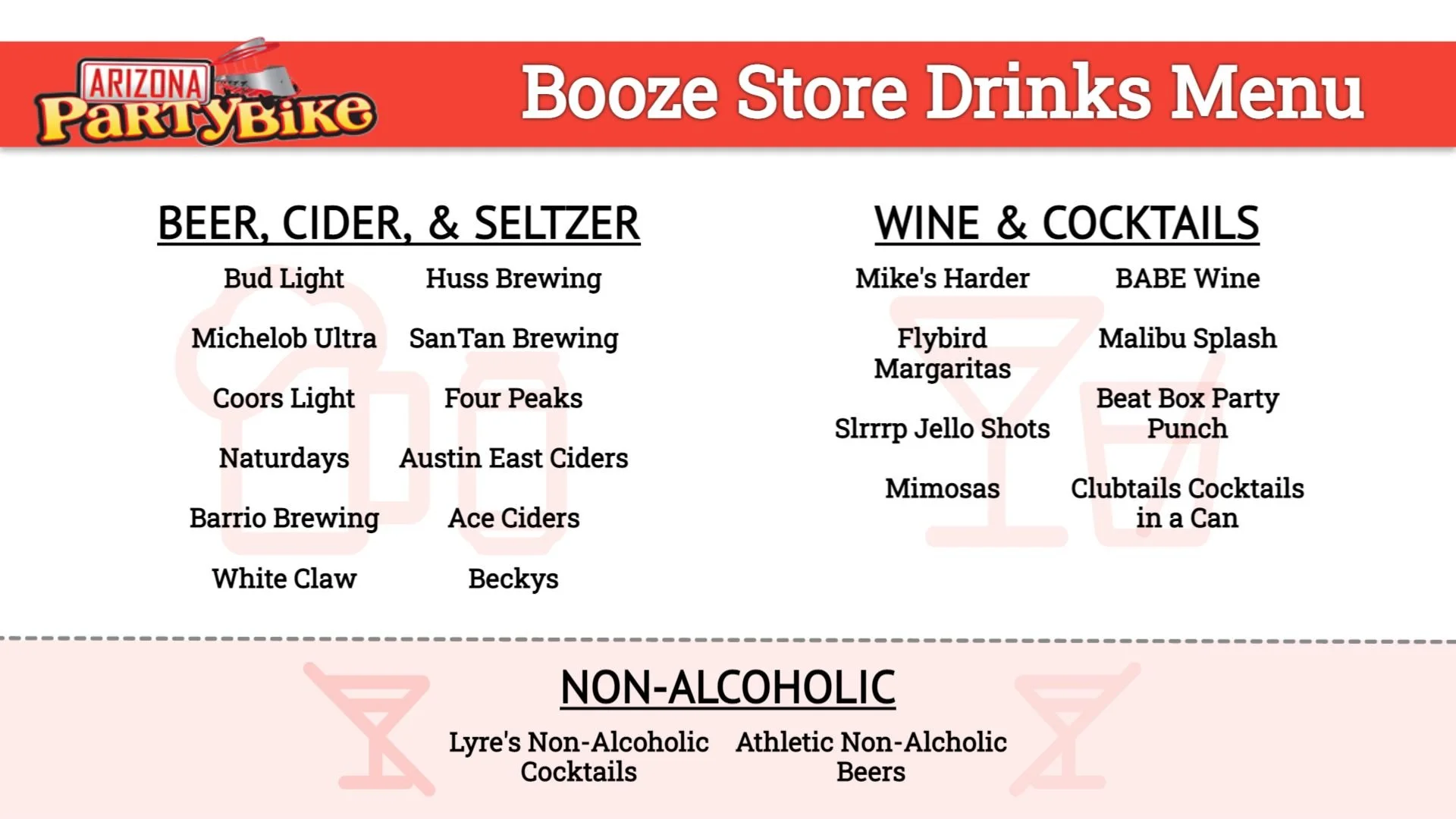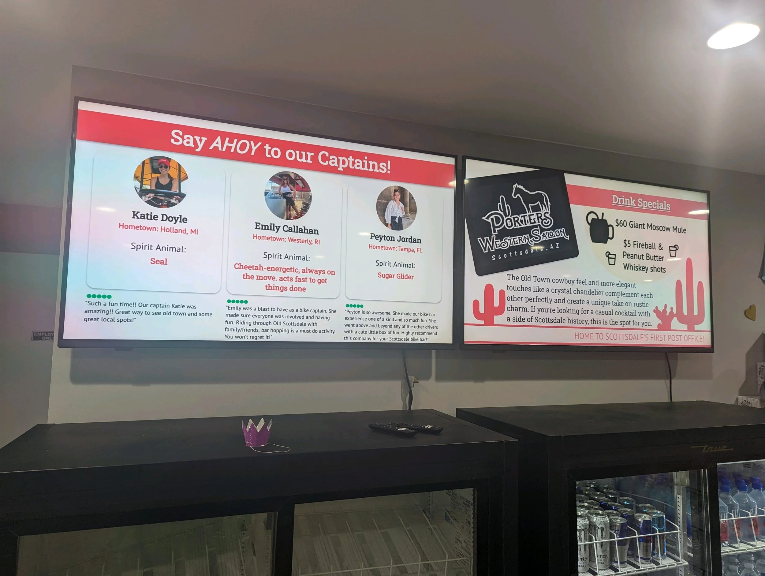 I was contacted by Shannon, the general manager at the Arizona Party Bike. I was asked to design several digital slides for the televisions in their booze room (front office). I recieved a bullet point list with notes regarding each slide project. After I completed a project I sent over my designs for feedback and moved onto the next project on the list.